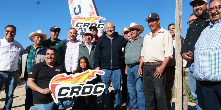 Acompañado por el dirigente nacional de la Confederación Revolucionaria de Obreros y Campesinos (CROC), Isaías González Cuevas, el mandatario destacó que esta obra forma parte de una estrategia integral orientada a aprovechar mejor las lluvias, recuperar los acuíferos y generar condiciones más favorables para las actividades productivas del campo sudcaliforniano.