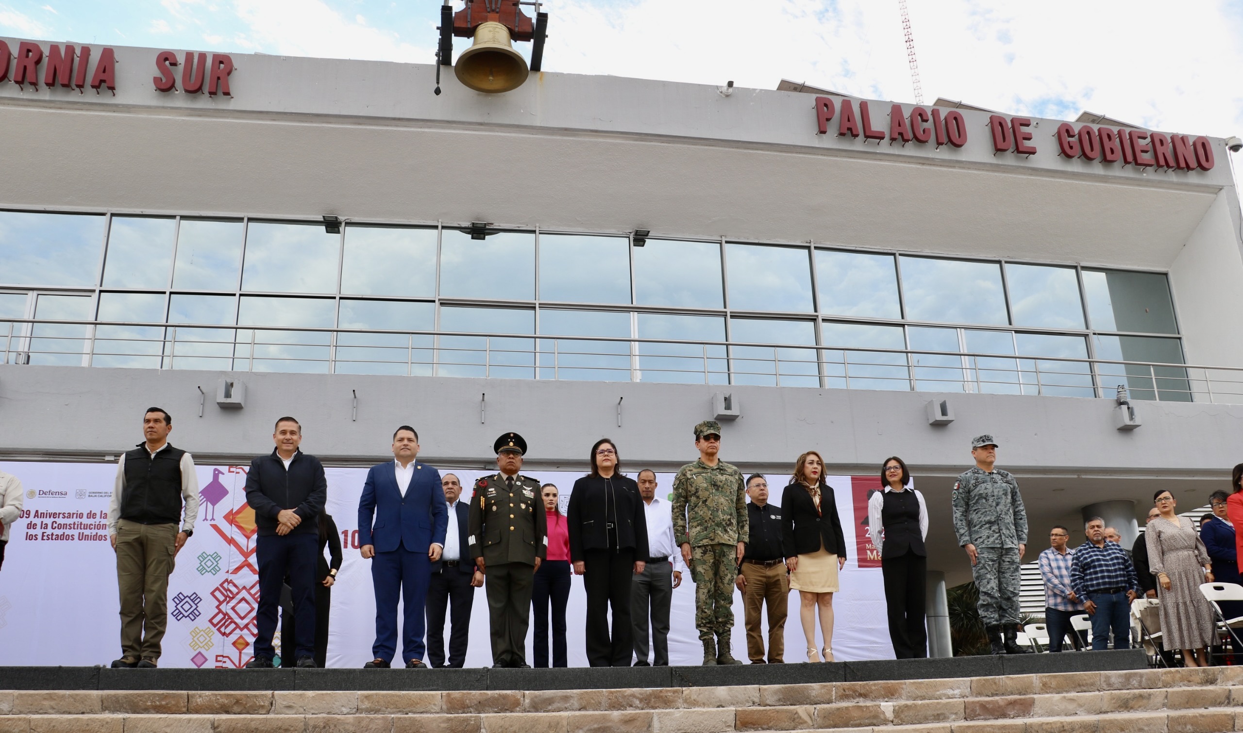 La Paz, Baja California Sur, a 05 de febrero de 202.- La subsecretaria General de Gobierno, Claudia Elena Meza de la Toba, encabezó, en representación del gobernador de Baja California Sur, Víctor Manuel Castro Cosío, la ceremonia conmemorativa del 109.º Aniversario de la Promulgación de la Constitución Política de los Estados Unidos Mexicanos, acompañada por titulares de los Poderes Judicial y Legislativo, así como por autoridades civiles y militares.