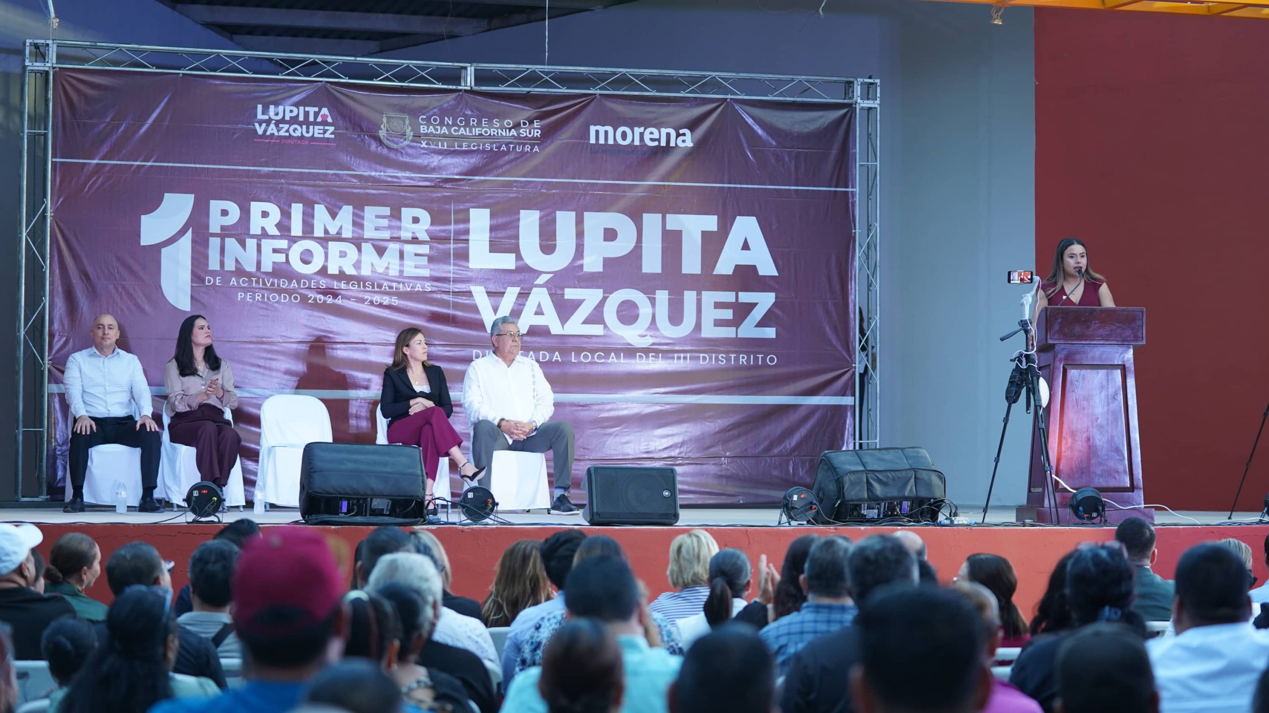 La Paz, Baja California Sur, 19 de noviembre de 2025.- La diputada Guadalupe Vázquez Jacinto, representante del Tercer Distrito, presentó esta tarde su Primer Informe de Actividades Legislativas y de Gestión, en el que destacó un trabajo cercano a la ciudadanía, basado en el diálogo, la atención directa y el seguimiento puntual de sus solicitudes.