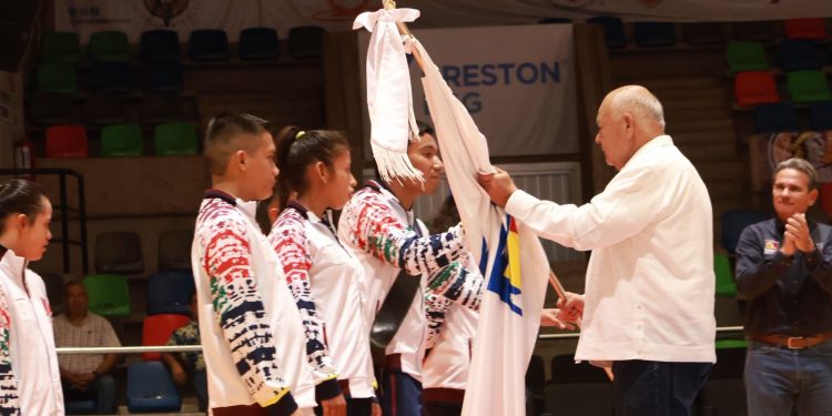 En este acto, el mandatario estatal entregó la bandera sudcaliforniana a las y los 48 atletas, entrenadores y delegados que integran la representación, invitándoles a portarla con compromiso, dignidad y amor por su estado.
