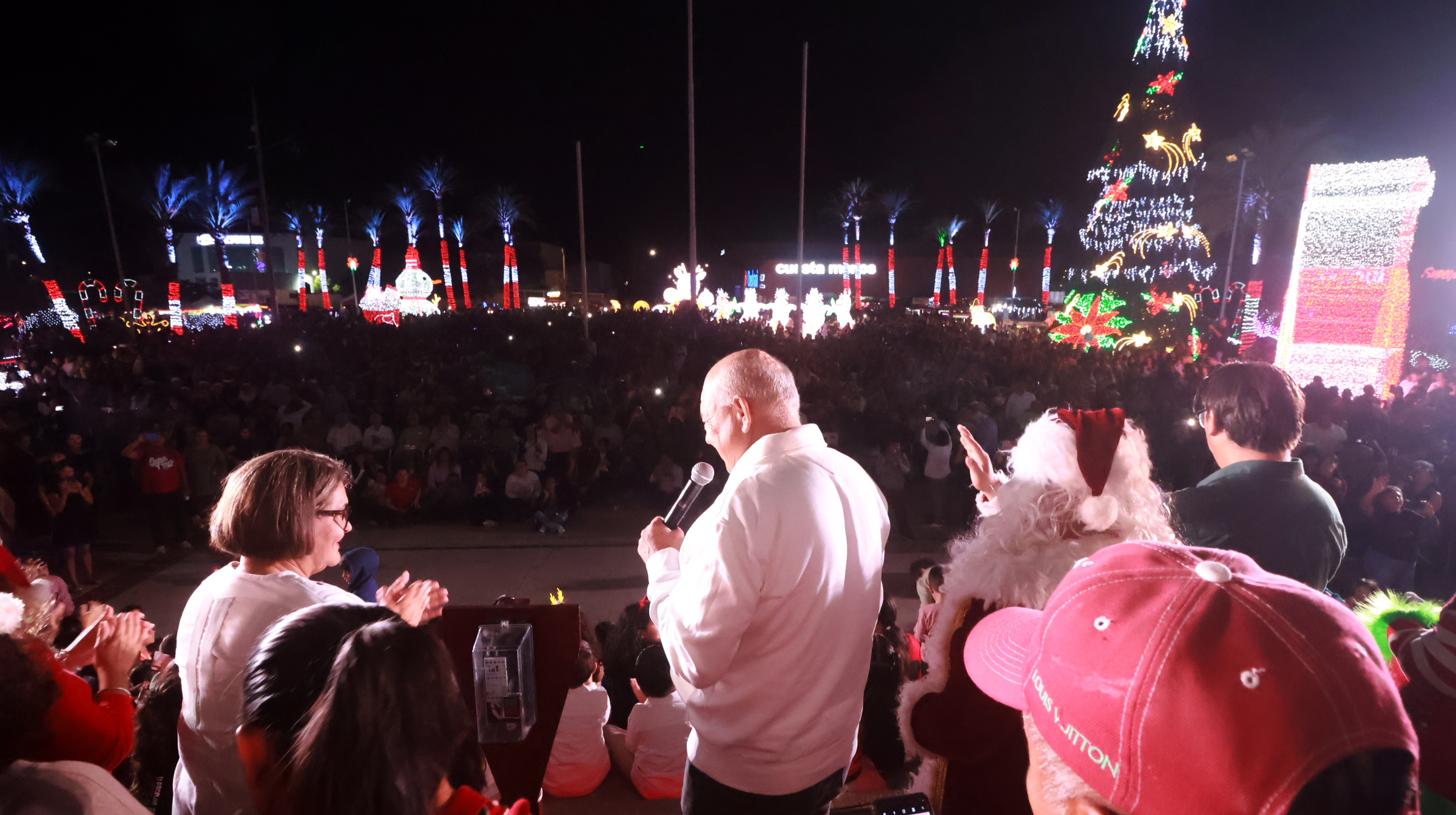 Previo al encendido, las y los asistentes disfrutaron de presentaciones artísticas tradicionales de la temporada, con la interpretación del mariachi de la Escuela de Música del Estado y, al concluir, la actuación del grupo musical Los Apson.