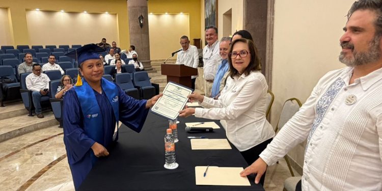 Durante un evento realizado en el Hotel Solmar, la directora general del IEEA, Diana Victoria VonBorstel Luna, acompañó a las y los beneficiarios en este logro académico, en el que se otorgaron 14 certificados: 4 de nivel primaria y 10 de secundaria a trabajadores de este centro laboral.