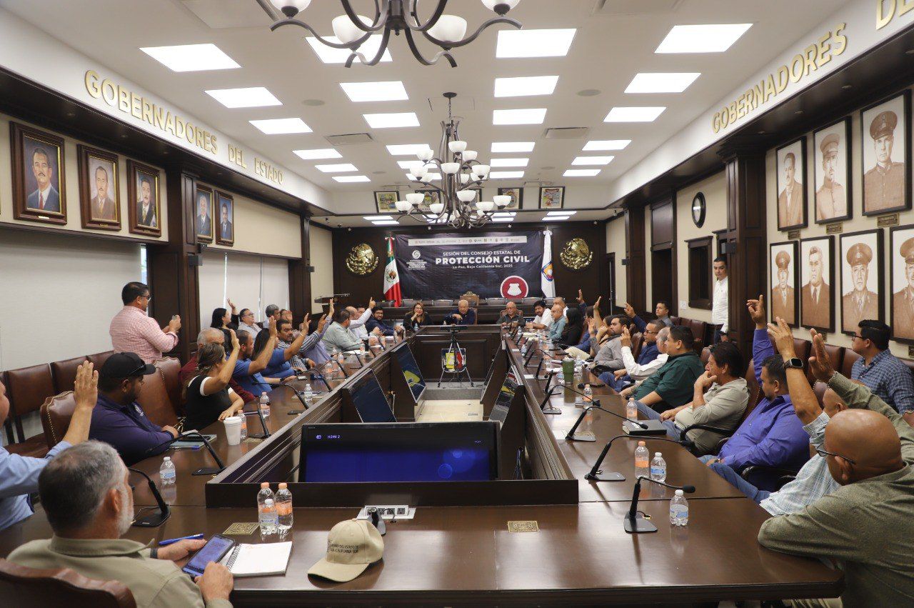 La Paz, Baja California Sur, a 13 de octubre de 2025.- Representantes de diversas empresas locales se reunieron con el gobernador del estado, Víctor Manuel Castro Cosío, para acordar la jornada “Constructores Unidos por Sudcalifornia”, un plan de trabajo conjunto que permitirá atender los daños ocasionados a la infraestructura vial por las recientes lluvias.