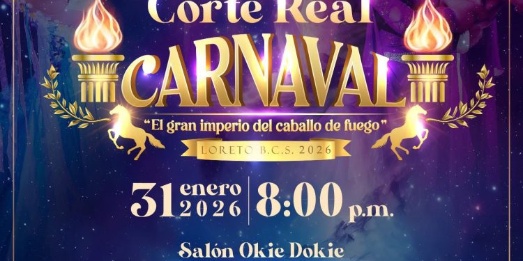 Loreto, BCS, 21 de enero del 2026.- Loreto vivirá una velada llena de tradición, música y entusiasmo con el Baile de Elección de la Corte Real 2026, un evento que marcará el inicio del Carnaval bajo la temática “El Gran Imperio del Caballo de Fuego”, destacó la presidenta municipal Paz Ochoa Amador.