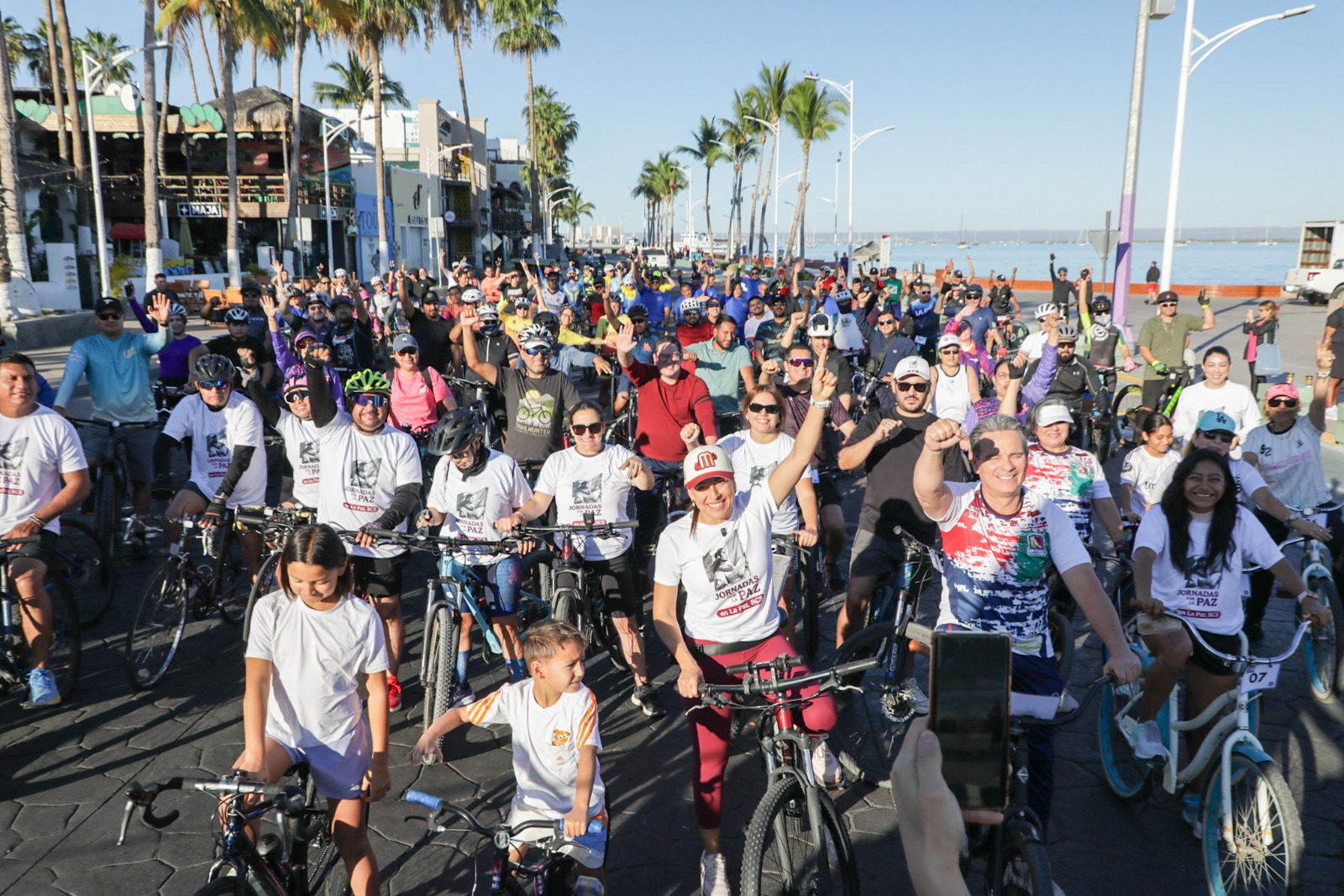 personas, la alcaldesa de La Paz, Milena Quiroga Romero, encabezó una Rodada por la Paz en el malecón paceño, como parte de las Jornadas por la Paz que promueve la presidenta de la República, Claudia Sheinbaum Pardo, reafirmando el compromiso del Gobierno Municipal con las políticas federales de prevención de las causas y el fortalecimiento del tejido social.