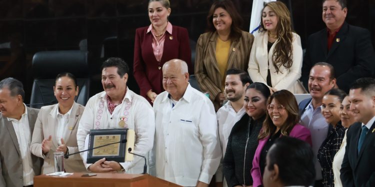 La Paz, Baja California Sur, a 4 de diciembre de 2025.- Al encabezar la sesión solemne del Congreso del Estado, el gobernador Víctor Manuel Castro Cosío entregó la medalla al Mérito Artístico y Cultural al actor sudcaliforniano Enoc Leaño Domínguez, reconocimiento otorgado por los poderes Ejecutivo, Legislativo y Judicial por su destacada contribución al impulso y difusión de las artes en Baja California Sur.