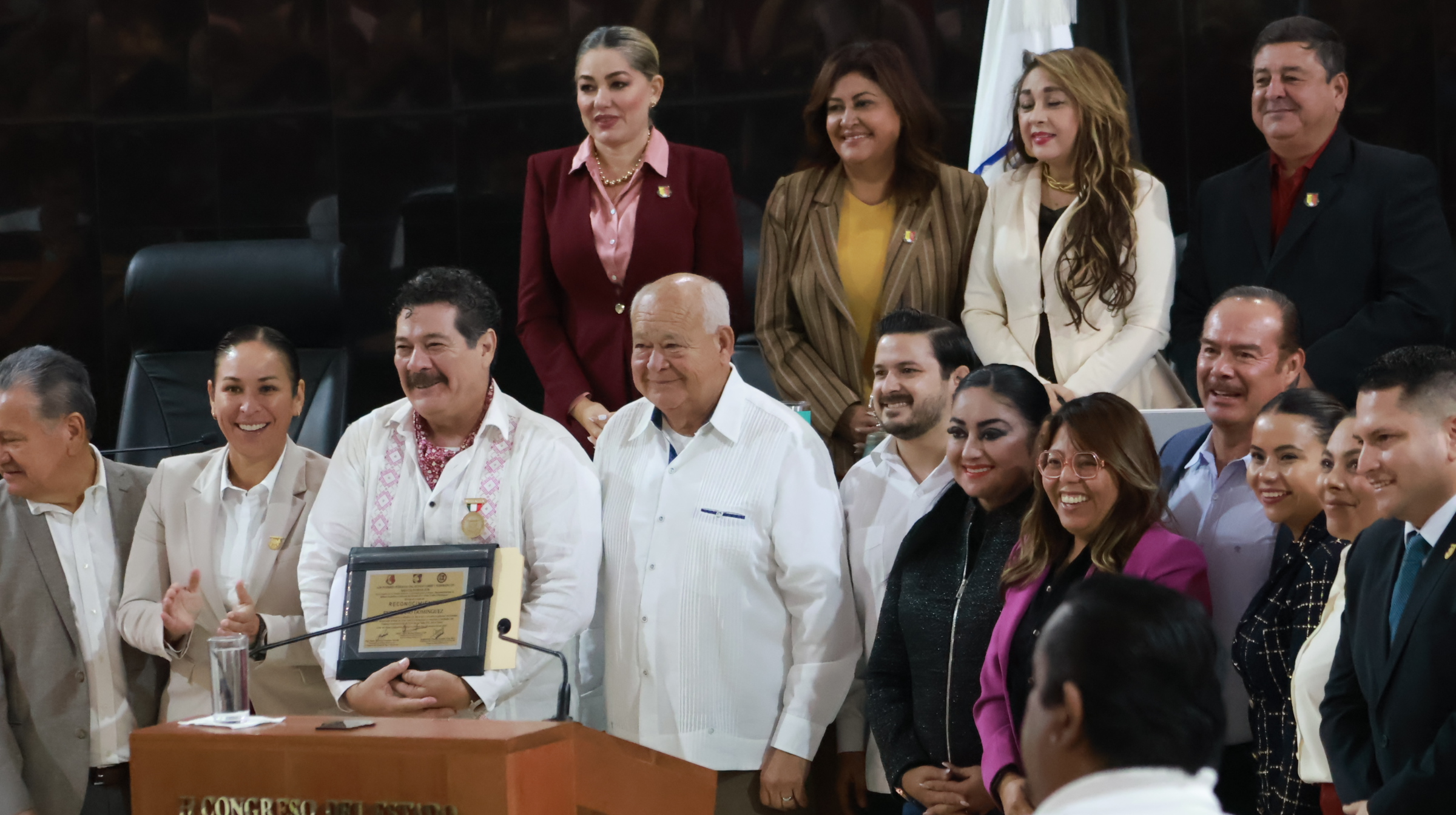 La Paz, Baja California Sur, a 4 de diciembre de 2025.- Al encabezar la sesión solemne del Congreso del Estado, el gobernador Víctor Manuel Castro Cosío entregó la medalla al Mérito Artístico y Cultural al actor sudcaliforniano Enoc Leaño Domínguez, reconocimiento otorgado por los poderes Ejecutivo, Legislativo y Judicial por su destacada contribución al impulso y difusión de las artes en Baja California Sur.