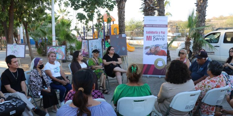 La Paz, Baja California Sur, a 17 de abril de 2026.- La subsecretaria General de Gobierno, Claudia Elena Meza de la Toba, encabezó el conversatorio “Sabiduría y Paz: Historia de mi barrio”, realizado en la colonia El Esterito, como parte de la estrategia del Consejo de Paz y Justicia Cívica de Baja California Sur para atender las causas generadoras de violencia y fortalecer el tejido social.
