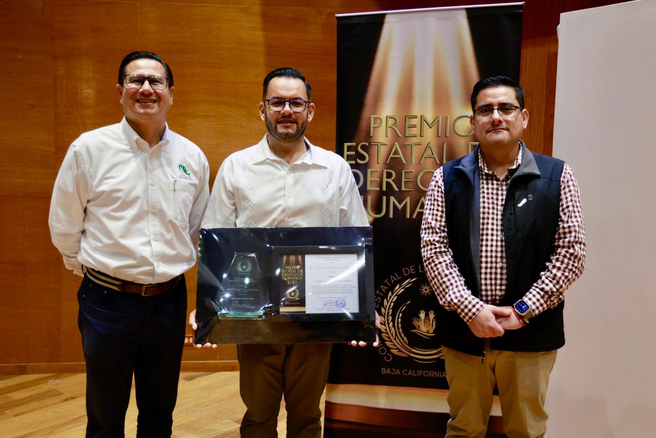 La Paz, Baja California Sur, a 11 de diciembre de 2025 .- El Colegio de Estudios Científicos y Tecnológicos del Estado de Baja California Sur (CECyTE BCS) reconoció la destacada participación del docente José Alonso Martínez Gómez, del CECyT 04 San José del Cabo, quien fue distinguido en la categoría Ciudadanía del Premio Estatal de Derechos Humanos 2025, por su contribución educativa y social en beneficio de las juventudes sudcalifornianas.