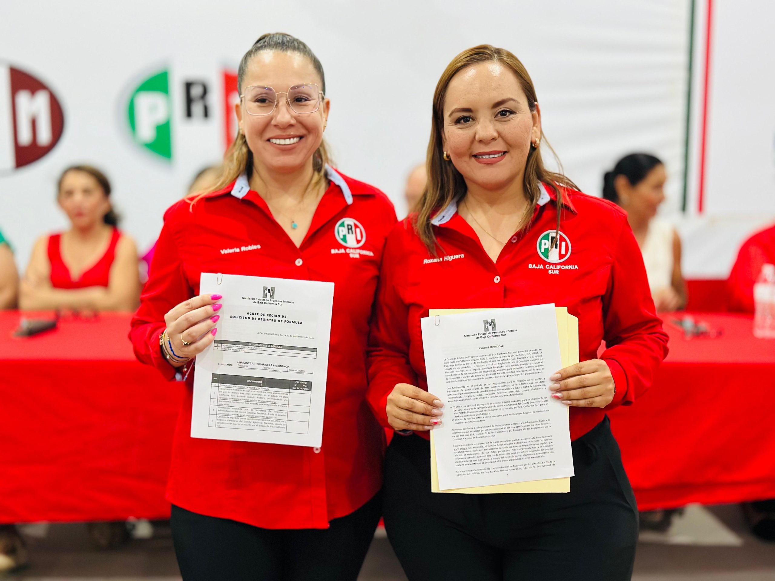 + Roxana Higuera Espinoza, y Valeria Robles Ruiz, nueva presidenta y secretaria general, respectivamente del PRI estatal. Ambas reconocen labor de Fabrizio del Castillo.