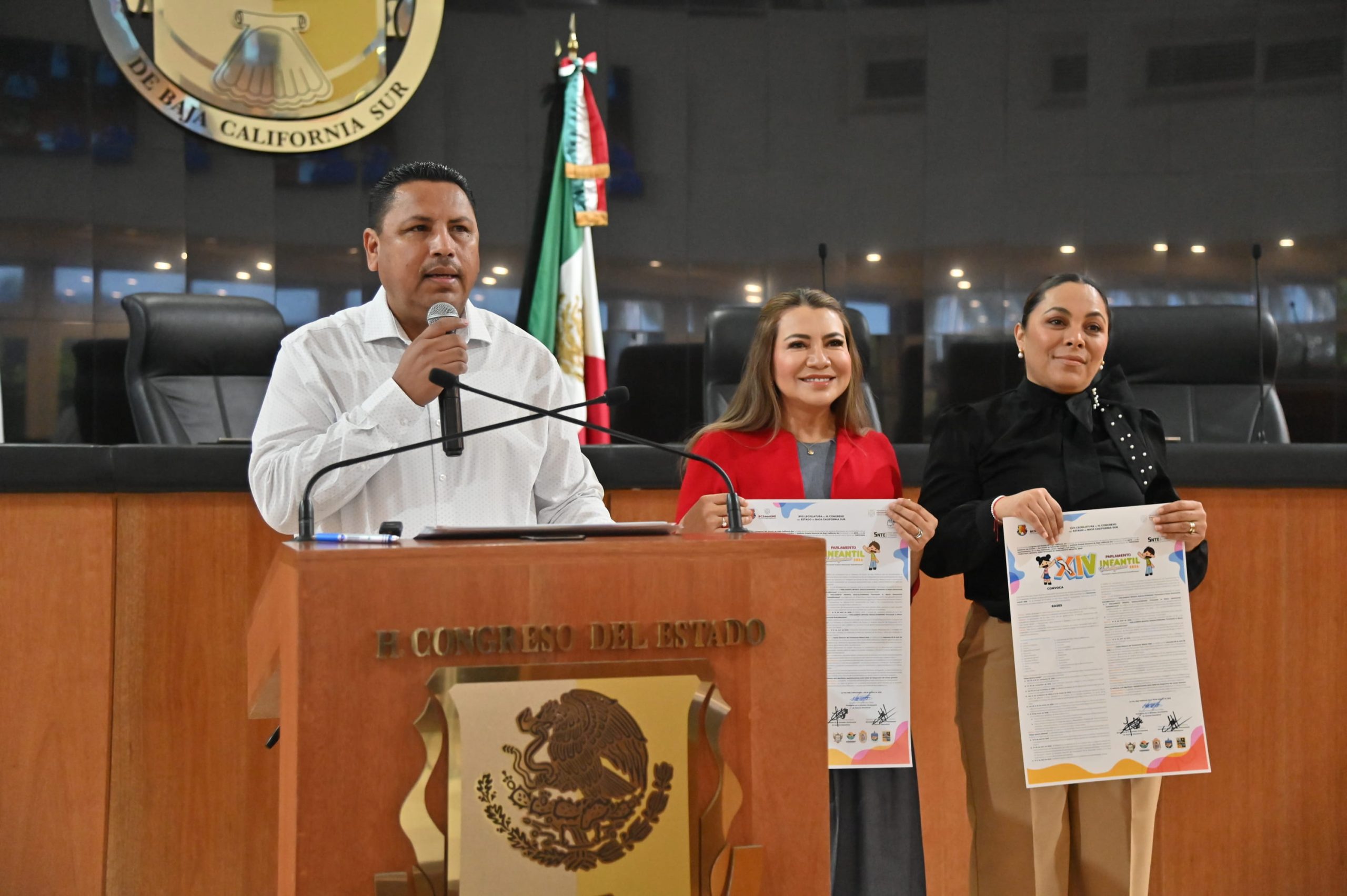 En rueda de prensa, integrantes de la Comisión de Educación, acompañados por representantes de la Secretaría de Educación Pública, el Instituto Estatal Electoral, el Sindicato Nacional de Trabajadores de la Educación y el Gobierno del Estado, informaron que la convocatoria tiene como objetivo fomentar la participación ciudadana de la niñez sudcaliforniana, fortaleciendo los valores cívicos y democráticos desde la escuela.